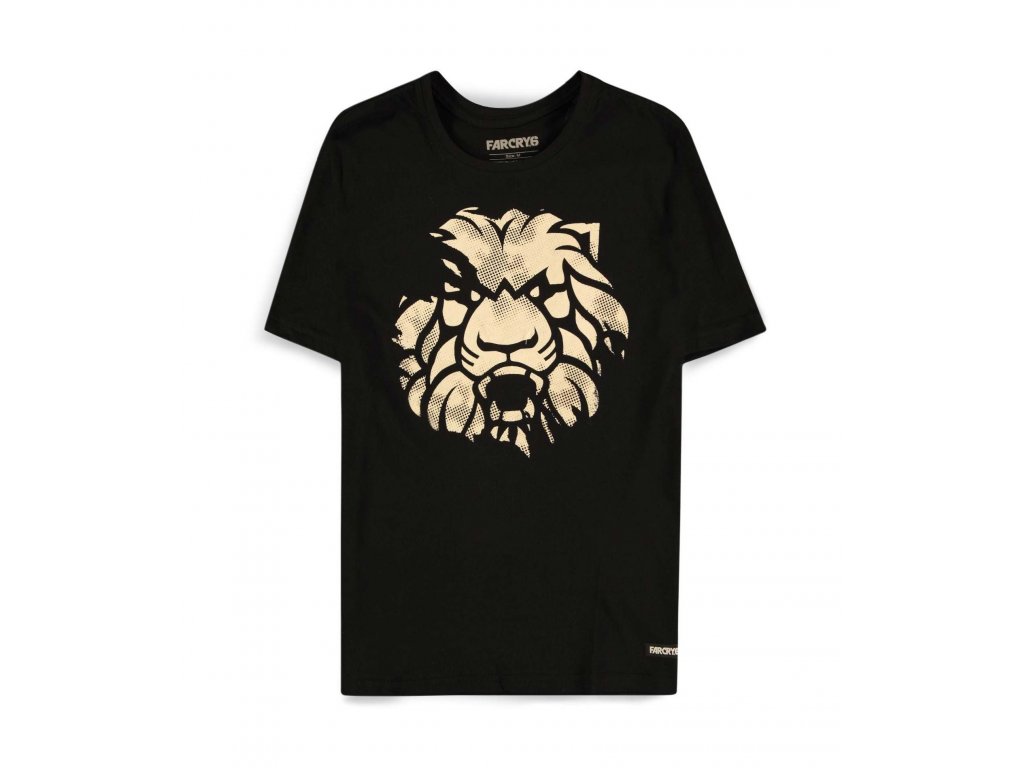 Far Cry 6 tričko Anton´s crest - Tohoto černého trička se lvem se nemusíš bát, lev tě nekousne. Právě naopak, toto parádní tričko ti přinese bohatství do celé hry FarCry6 a co si budeme, myslím si že všichni z partyzánské frakce Libertad ti budou tričko jen a pouze tiše závidět.