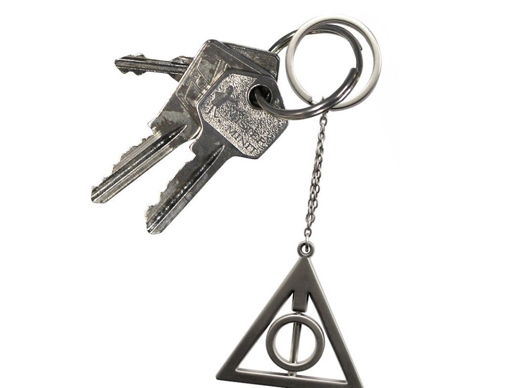Harry Potter klíčenka Relikvie smrti - Vzpomínka na "Příběh tří bratří" a dary (relikvie), které bratři dostali od postavy jménem "Smrt" vyobrazené na kovovém přívěšku relikvie smrti.