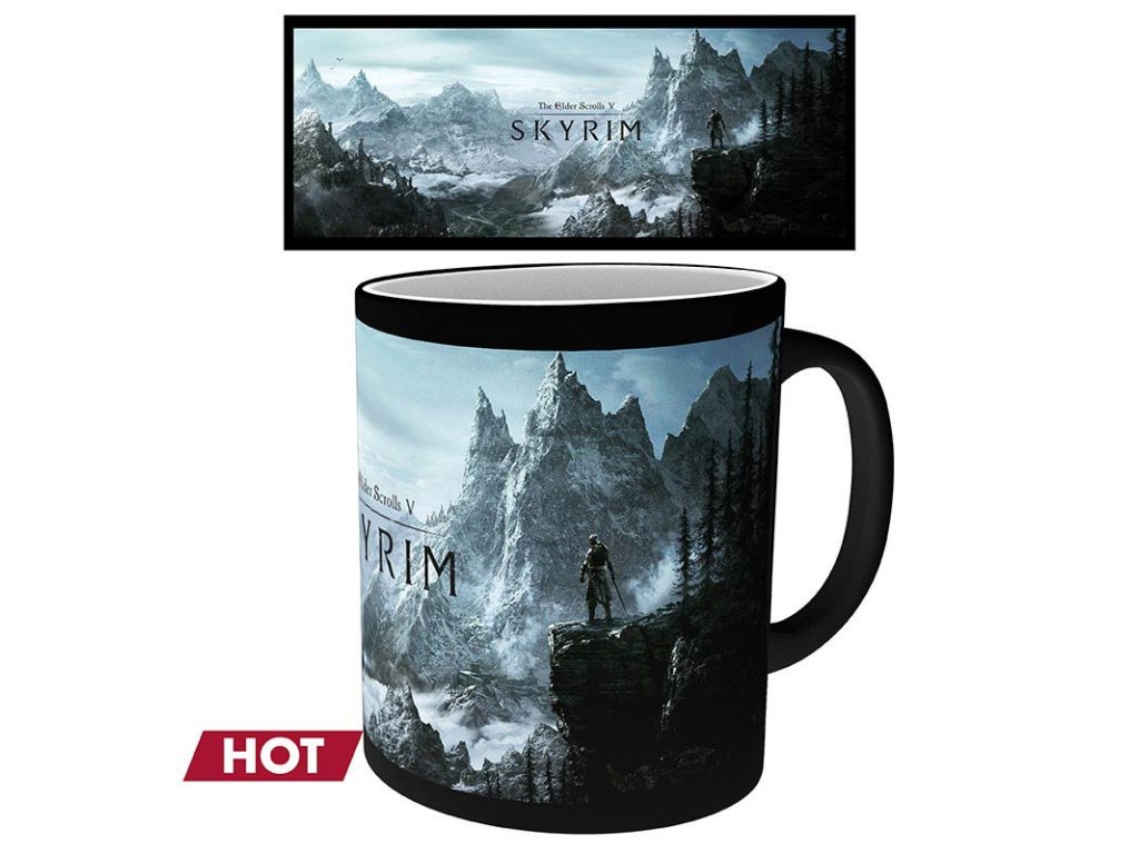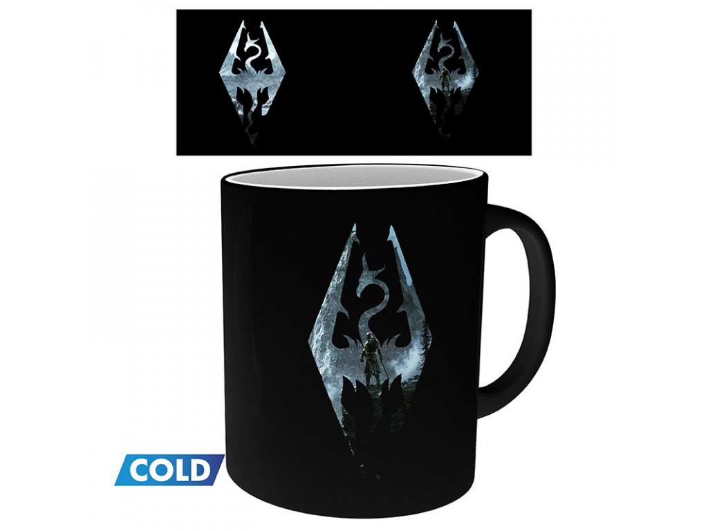 Skyrim hrnek Dragon Symbol "Heat Change" - Jestli nemáš rád/a ranní vstávání a cítíš se po ránu mizerně, tak tenhle hrnek ti náladu rozhodně zlepší. Nalej si horkou kávu nebo čaj a nech se unášet krásnou Skyrim krajinou.